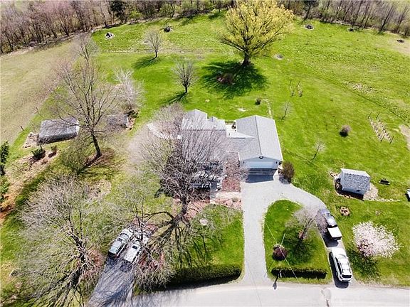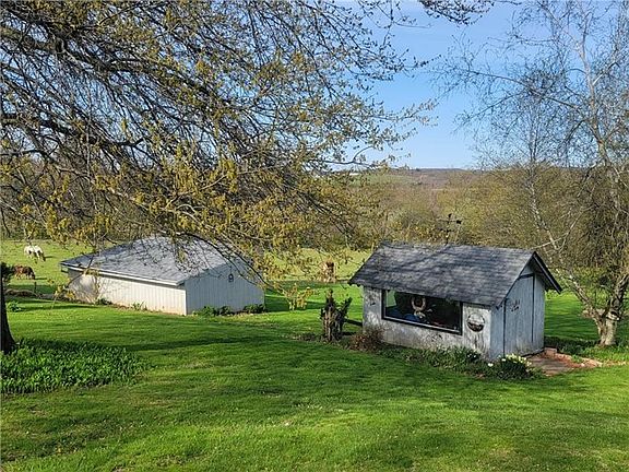 Well cared for custom Craftsman settled on a 3.63 acre farmette in Laurel school district, including 3 outbuildings and a circle drive. Beauty inside and out, from the great backyard view from the 3 season porch or deck, the cozy wood burning fireplace in the spacious living room open into a formal dining room, flowing right into the well-designed kitchen with dual fuel range. Hallway off kitchen leads to full bath with purging jacuzzi soaking tub and convenience of the stacked washer/dryer. It also connects the 2-car, 220 amp garage with extra heated workshop/studio. Summer kitchen in the basement to make jams from all of the fruit producing bushes and trees on the property. 3 beds, updated full bath with walk in shower upstairs and walk up attic for storage. Pella windows, newer roof, hot water tank and porch railings. Gutter guardsand frost proof water spicket makes for easy outside maintenance. 20 min drive to Moraine State Park & McConnells Mills practically in your back yard