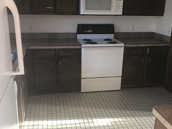 - Kitchen: Counter Tops-Tile, Cabinets-Stained
