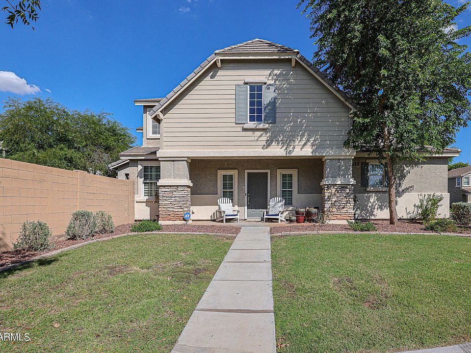 One of the largest lots of Copperleaf, across the street from one of the community parks, this 3BD/2.5BA beauty awaits. Upgraded kitchen includes breakfast bar, pantry, & rollout shelves. Home also features 18'' tile, built-in surround sound in family room, master BD, and patio. HOA maintains all the front yards weekly and has security patrols. 2 pools, multiple playgrounds, basketball courts, and several open spaces. 1 mile away from Marigold K-12 charter school , rated 9 out of 10 from Greatschools.org. Nearby bus for easy ASU downtown Tempe visiting. Close to South Mountain hiking, Community College,(which has a public library). Convenient to both Fry's and Safeway, Sky Harbor, and the I-10.