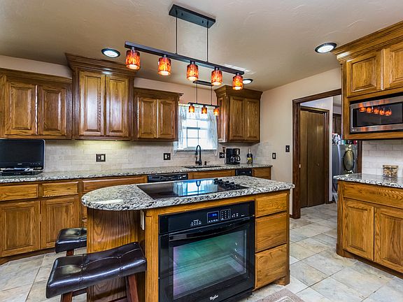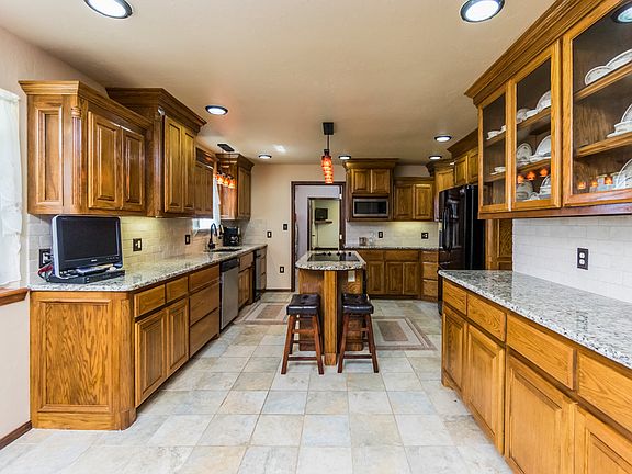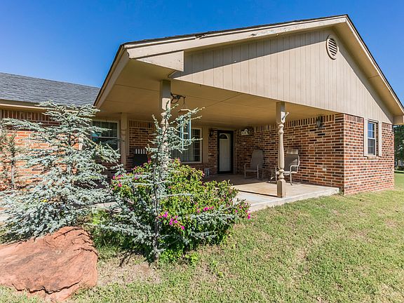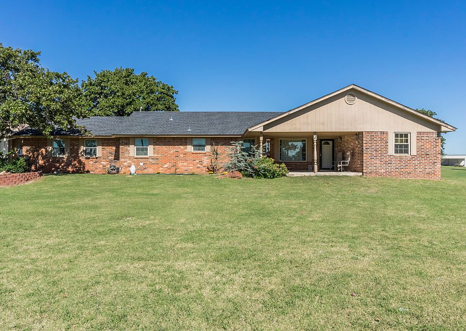 Country Oasis Acreage just minutes from OKC, Norman, Tuttle. Grand front porch prepares you for the 'large gathering' flow of this immaculate 2,665 sf home. Spacious country kitchen opens to dining room, has granite counter tops, subway tile backsplash, stainless appliances, pendant lighting on cook island, additional pantry space in utility room. Living room has exposed brick hearth, wood-burning fireplace, new carpet throughout, new HVAC . Master bedroom is large enough for king bed, over-sized furniture. Has en-suite bathroom, adorable primping counter, a 'Lisa' private shower. Extra large bedroom has walk-in closet. Lots of hallway storage for linens & towels. Huge room for home office, 2nd living, game room or media room. Breezeway to 2 car garage. 34x22 covered RV pad has electrical outlet, 30x40 wired workshop, 14x17 storage building plus a storm shelter. This home was built with pride of craftsmanship and quality construction. Mature shade trees dot this beautiful property.