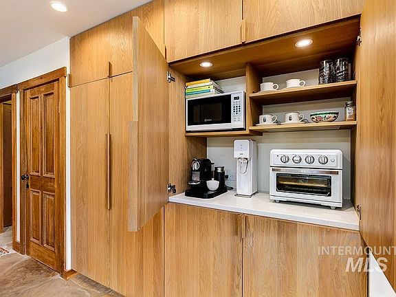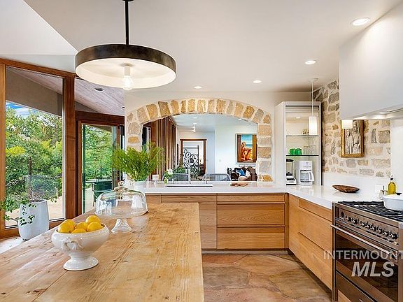A legacy property integrated into a premier foothills location! Concealed behind a screen of native rock outcroppings & exotic foliage, this MCM-inspired design is revealed as the guarded entry evolves into complete transparency; connecting the architecture to the unspoiled mountain range beyond. The unique design traverses time, where every step reveals something remarkably unexpected & thoughtful renovations merge today's luxuries with the character of the time-honored design. The interior clings to the landscape through walls of glass that are nearly invisible, serving as inspiration for the natural palette that seems to be laid right from the earth. Native sandstone floors & soaring cedar-lined ceilings edge the gallery-like open floorplan with natural vignettes defined by bespoke finishes. Imported stone backsplash lines the walls in the brilliantly renovated kitchen, layered with custom clean-lined wood cabinetry that conceals convenient storage solutions & appliances from the industry's leading brands.