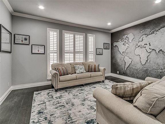 Gorgeous home in the Huntwick addition of Edmond. Updated and full of space and natural light! Donât miss the dark hardwood & beautiful ceramic and porcelain tile flooring, complete with all new carpet in the bedrooms and bonus movie room. With fresh paint & light fixtures throughout & new quartz counter tops in the kitchen and bathrooms, this house has all the modern amenities with its warm exterior and regal brick charm. A few extra details: Incredible storage, tornado shelter, raised garden boxes and mature trees. Movie Screen & trampoline to stay. Hurry in to see all this property has to offer today!