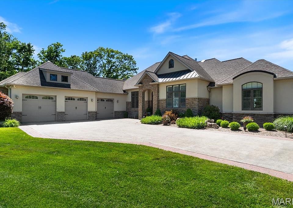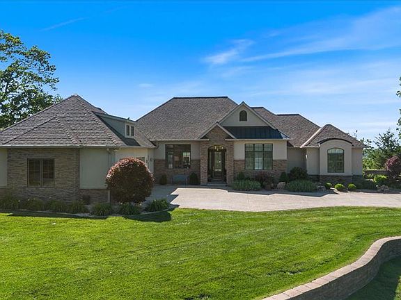 Experience luxury & serenity on this 10 acre gated estate perched atop Eagle Cliff. Impressive Craftsman style home offers panoramic views of the valley below & Missouri bluffs. Plenty of space for entertaining from the outdoor kitchen, infinity pool surrounded by Travertine tiles w/custom designed patio or the deck that spans across the back of the house. Make your way inside to find warm Birch wood floors, views from almost every room, formal dining rm, gourmet kitchen w/2 islands, custom cabinetry, quartz counters, high end appliances & prep sink. Primary suite w/2 walk-in closets, see thru fireplace, luxury bath w/heated floors, walk-in shower w/dual shower/rain heads & heated, jetted tub.Walk-out lower level w/addtl 2 beds, 2 full bath, fully equipped gym w/sauna, family rm w/custom bar & rec rm. Other features include: security system, zoned HVAC & irrigation system & minutes to the JB Bridge. Once in A Lifetime Opportunity to own one of Monroe County's most Premier Estate Homes!