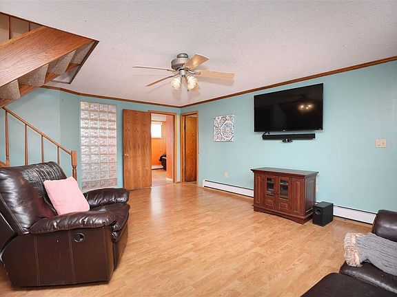 As you enter the home a large landing area greets you that is also by the 2-car attached garage. Upstairs features the kitchen with an appliance package, a large breakfast area with a patio door leading out the wood deck and fenced in yard! 2 ample sized bedroom and a full bath complete upstairs. Lower level offers a family room with wood fireplace, Huge master bedroom with the 2 nd full bath with a tile shower. Check out the updates the seller has done that includes a new Boiler system and battery back up sump pump! Offers submitted by 10am Saturday Dec 12th. Presenting offers at 1pm.