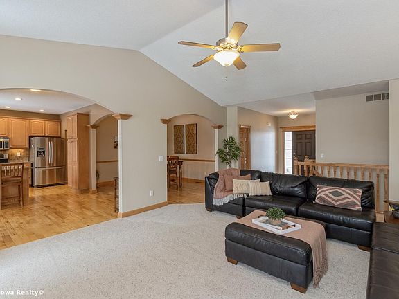 New price and fresh paint on the main floor Extremely well cared for Grimes walk-out ranch in Johnston school district. One of the best floor plans on the market Open concept designated areas for today's modern lifestyle Quality is obvious in every inch of this home Upgraded maple trim, cabinetry, solid core doors, granite counters, hardwood flooring, & tile in baths/laundry room. Kitchen is open to the huge family room cozy fireplace. You'll love soaking up the vitamin D in the sunroom right off the kitchen The master suite is spacious and well situated off the family room 10' tray ceiling, large bath double granite vanity, jet tub, tile shower, and walk-in closet. Professionally finished walk out LL features a massive family room granite wet bar, lg bedroom/full bath, & generous storage room. Exterior highlights include a 12'X16' deck, custom patio natural gas fire pit, central vacuum, irrigation, & Radon mitigation system. 150 SF in sunroom not on assessor's page.