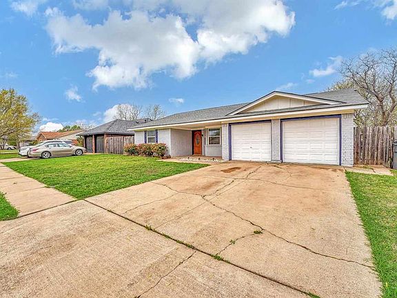 Great home in great location! Just around the corner from Hugh Bish elementary school. 1750 sq ft. 4 bedrooms, 2 baths, 2 living areas, LVP floors in both living areas. Large front living area, den family room with gas starter. Wood burning fireplace, big dining area opens to updated kitchen, solid surface counter tops, new knobs, hardware, newer back patio sliding door, huge covered patio, fenced in yard, large primary bedroom with walk in closet. Primary bath have newer vanity and newer tub tile surroundings. Double pain windows. Newer lights. Freshly painted, new roof 2024. Call 580-248-8800 for showing or text 580-581-7870 for more details.