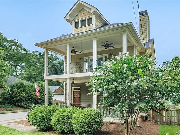 Stunning 3 bed/2.5 bath bungalow within walking distance to Oakhurst & Kirkwood Villages plus the 2nd/Hosea Biz District! Step onto the welcoming covered front porch w porch swing and enter into a sun-soaked great room with a gas fireplace, gleaming hardwoods, high ceilings, open to dining rm and kitchen. Kitchen loaded with SS appliances, granite countertops and pantry. Retreat to the master bedrm with private covered porch, well-appointed updated bath with double vanities, soaking tub and more natural light! Almost new washer/dryer and hot water heater! Entertain on the back deck with a private fenced backyard, raised flower beds and lots of plants including a fig tree and sunflowers. Back entry from 2 car garage plus on a well manicured corner lot.