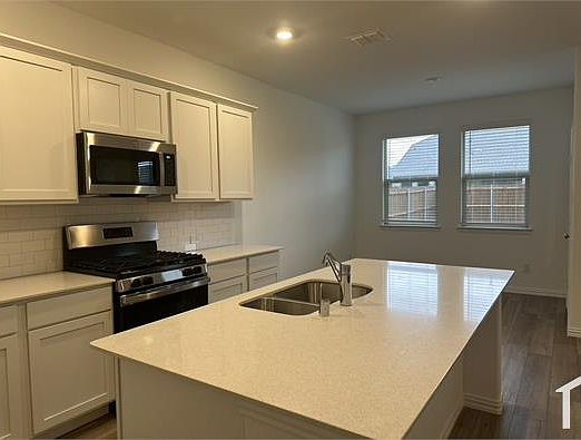 4 Bedroom Single Family House For Rent This New built 4 bed 2 bath house is located right by the US Hwy 380 and closer to all the amenities. Nestled in a Vibrant community there is an easy access to Groceries, Gas stations, Schools and many Restaurants. The house is equipped with Gas range, microwave and the Oven. The two Car garage leads to the hallway. It has a Luscious green lawn with fenced backyard and covered patio perfect for your evenings or for your little one's to play!