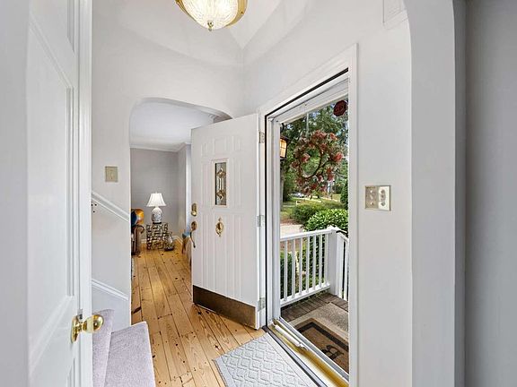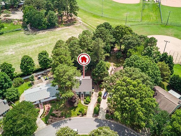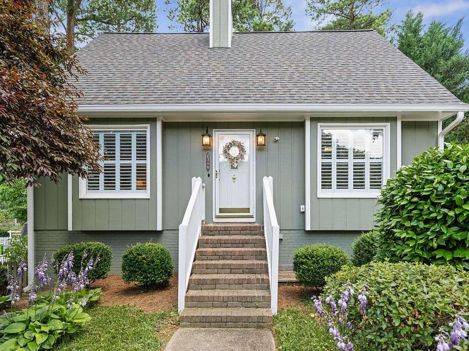 This 2-story cottage on a cul-de-sac enjoys a private fenced backyard in this convenient N. Raleigh location. Inside you are greeted by pine wood flooring, picture rail molding, & 1-piece crown molding. The family room features plantation shutters, an electric fireplace with a wood beam mantle, & an attractive shiplap surround. The dining area is adjacent to the living room. Take in nature views from the spacious screened in porch or raised deck. The kitchen provides ample cabinet storage, built-in pantry storage, & tile flooring. Adjacent to the kitchen is a flex room, full bathroom, and a staircase to the ground level. The flex room with a closet can serve as an office, den, or dining room. Take the stairs up to 2 bedrooms with double closets and new carpeting. The shared bathroom features a free-standing tiled surround bathtub with a rain showerhead & handheld sprayer. The ground level offers additional space or overflow guest accommodations with a half bath, laundry station, & storage/hobby room. Direct access to the fenced backyard provides an outdoor paradise with covered & open patios, shade trees, & shed.