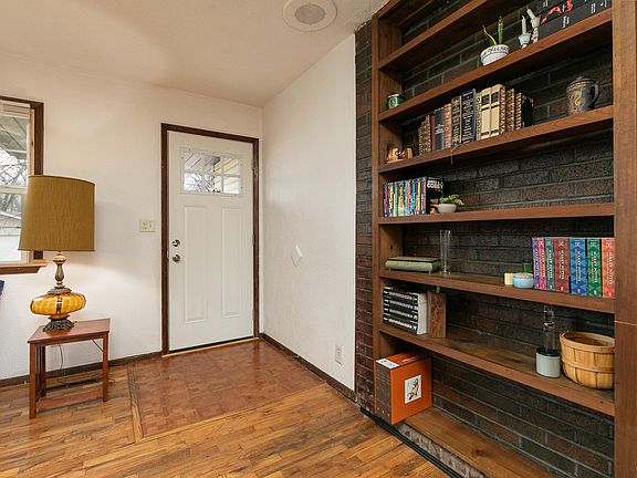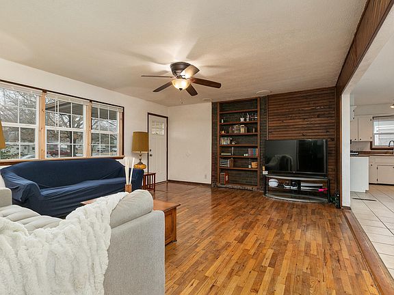 Location, location, location! You'll find the best home value in southeast Springfield at 2308 South Delaware... conveniently located east of Mercy and north of Battlefield Mall in a private neighborhood with no neighbors behind you and no through traffic! This three-bedroom one-bathroom house has fresh paint, great updates, a newer roof, updated HVAC, attic fan, an east-facing fenced yard, and a semi-open floor plan. Seriously, all you have to do is move in! You'll find neutral colors throughout with wood and tile floors in all but two bedrooms, a spacious living area with a wood accent wall, and a large built-in bookcase. The largest of the three bedrooms has a walk-in closet and the hall bath has faux marble walls surrounding the tub shower. The kitchen/dining area has plenty of room for your table and a U-shaped kitchen work area with a dishwasher, updated sink and faucet, and freshly painted cabinet doors. A sliding patio door leads to the east-facing fenced backyard that borders the Missouri Veterans Cemetary. Check out the huge tree in the backyard that will give you loads of shade inthe summer!