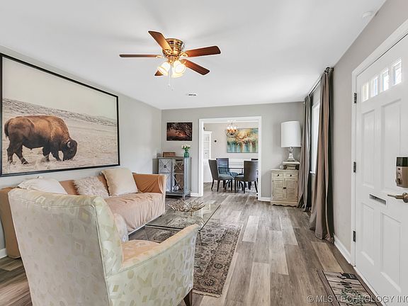 Don’t miss out on this Midtown Charmer in Florence Park South! With a recently renovated interior, this home has it all ~ new windows, updated fixtures, white cabinets, quartz countertops, new floors, and lights on smart switches controlled by wifi! Upon entering, you’ll find the first living room which boasts floods of natural light with a built-in wall feature from the 1940’s. From there, you can access all three bedrooms, including one off the living room that could be used as an office. Next, you’ll find the dining room with original corner built-ins and windows, which opens to a bright and clean kitchen with beautiful white cabinets, stainless steel appliances, and an onlook to the main living room with an abundance of windows and a white brick fireplace. With sleek gray paint, white quartz throughout, and updated fixtures, you truly get the best of modern with the charm of Midtown! The home also offers a garage, inside utility, and back porch for seating. Located in the heart of Midtown less than 10 minutes from the Gathering Place, Downtown Tulsa, Mother Road Market, Cherry Street, and more with convenient access to HWY 51 & 244 ~ Come see this home today!