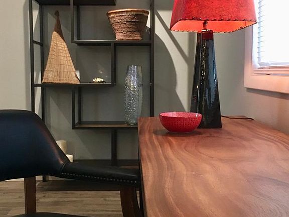 Monthly rental - One to Nine Months: Experience the Retro Lodge for a home relocation, temporary work assignment or for interim inclusive monthly housing with a relaxed, sophisticated 1959 vibe. This newly-remodeled 3-bedroom ranch home is a pet-friendly urban oasis in a peaceful neighborhood with curated vintage & contemporary furnishings, art and artifacts. It's near Joplin's best shopping, major hospitals & universities. Cook in or dine out, stream shows on the smart TVs or oversleep in our comfy beds. In many southern Midwest neighborhoods, including Joplin's, you will often see couples strolling, children riding bikes, people jogging and owners walking their dogs. You will feel instantly at home. Joplin is easy to navigate, essentially without traffic congestion. Everything you need, it seems, is less than 10 minutes away. Welcome to to our neighborhood! Features include: - Month-to-month - All utilities and internet included - Completely furnished including all appliances, cookware, and bedding - Access to high-speed internet - Minutes to KCU Medical/Dental school, Mercy and Freeman hospitals - Quiet neighborhood - Private fenced yard - Upscale design and modern amenities - Yardwork and housekeeping arranged - Pets negotiable - Covered parking - Smoke-free