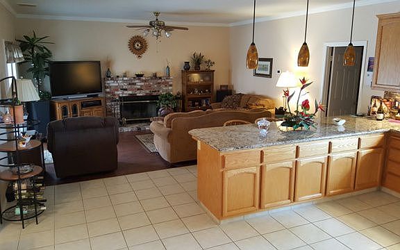 Open, Light and Spacious College Hts Home, 9' ceilings throughout, Crown Molding, tiled flooring entry, kitchen, dining, halls and baths, Wood flooring in Living and Family Rooms, Inviting front entry brickwork and walk way and fountain, Living Room features Bay window, Dining with Built in Buffet, Remodeled Kitchen Quartz Counters and tiled backsplash with Stainless Steel Appliances, Family Room with brick fireplace and french doors to large covered patio, Master features double french doors and walk in closet, Inside Utitlity Room, 16'x18' Pergola in backyard, back yard and New outdoor kitchen, 10x12 Workshop, Two Paved RV Parking areas, Wrought Iron Double Side Gates, Block wall fencing all around, Immaculately landscaped front and back yards, Home shows like New, well maintained and cared for. You will not be dissapointed.