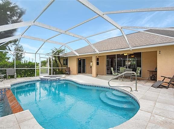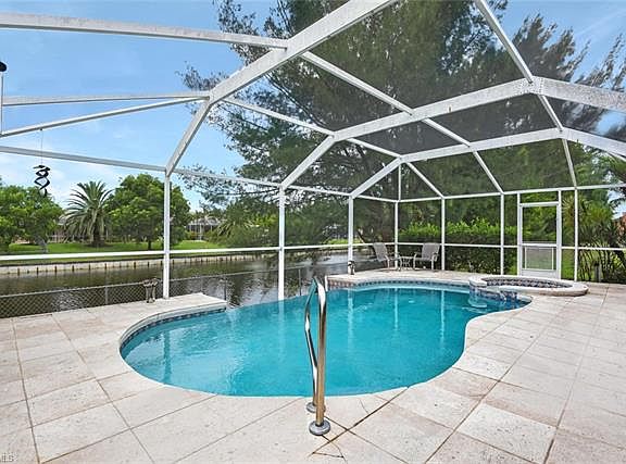 This little gem is full of surprises from the infinity pool surrounded by travertine tile overlooking the wide spreader canal to the custom wood inlays in the floor. The western Florida sunsets alone will sell this house as the night sky becomes a magical and spectacular light show with more color than one can imagine. This 3/2 has been home to one owner since it's build in 2001 and has never served as a rental. The tender loving care and maintenance can be seen throughout each room. The upgraded appliances and brand new AC unit add additional value. This home even has an indoor laundry room with extra storage and shelving. An open floor plan and vaulted ceilings give it a very light and bright feel. The master bedroom has been remodeled complete with custom wood flooring. This home is priced to sell and is located in the desirable Southwest Cape with quick access to Veterans Pkwy to exit to Fort Myers. Close to shopping, restaurants and waterfronts this home has it all. Great starter home or vacation home to escape the winter blues for our northern friends.