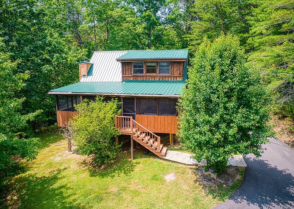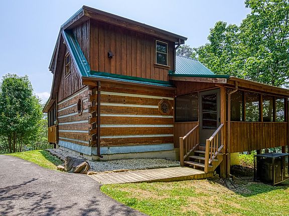 Log Home with 2nd bonus room with bed in loft, new roof, privacy, large land lot, fire pit, dual porches, & Mountain Views! Gross rental income as high as $68k in 2021! Private location with land lot and lawn! This true log cabin with Appalachian chinking is one-of-a-kind on beautiful view lot near Bluff Mountain! The perfect getaway in the Smokies! You'll love the screened in porch, oversized hot tub, firepit, LVP flooring, rustic fireplace, and secondary loft bedroom with air hockey. This cabin offers the peace of nostalgic Smokies, without immediate neighbors, noise, or condominiums! Invest long term in a property with guaranteed repeat rental business, great financials, and well maintained conditions. This cabin won't last long at this price! See this cabin just miles off the Pigeon Forge Parkway today! Property has hit nearly $60k in gross rents as a star performer with its current rental program, which holds over ten years of repeat business! Invest in the Tennessee Smokies today! Purchase "At Wild Turkey" for that perfect Tennessee Getaway!