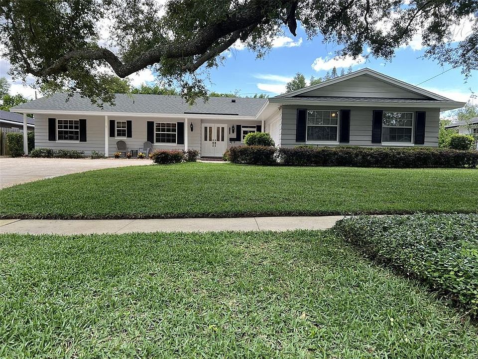 Luxury living and convenient to everything! This Winter Park home is ideally located on a quiet street and in Winter Park’s top-rated schools district including short distance to Winter Park High and Brookshire Elementary and only a jiffy to Glenridge Middle School. This highly sought after and charming neighborhood has tree lined canopy streets, sidewalks, and easy access to the popular Cady Way trail. Get some fresh air and exercise at the nearby Cady Way Park with swimming, ball fields, playground, pickleball, and tennis or hit the links at Winter Park Pines Country Club just blocks away. Take a stroll or bike down Cady Way trail to Lake Baldwin and the Baldwin Park Downtown district. For shopping, dining, or entertainment this home is just a short drive to Winter Park’s famed Park Avenue and the Aloma Shopping Center with Publix and many shops. Just minutes away to Rollins College, Winter Park Hospital, Center for Health & Wellbeing, and Full Sail University. This exquisite home is located in a beautiful neighborhood and no HOA. Representing the welcoming personality of the home, a breezy covered front porch is a greeting to passers-by, and a relaxing outdoor extension of the living space. As nice as this is, many rewards greet those who cross the threshold into the remarkable interior. Even after a thousand entries, the new wood look tile flooring at the entryway, living areas, and kitchen makes a great "first" impression every time. Directly ahead is the large living room and a wall of French doors where sunlight through the windows provides amazing light and views, and maintains the home's connection to nature. Crown moldings and chair rail wainscot in formal areas add to the elegance and charm of the home’s interior. The kitchen features a delicious concoction of granite counters, complemented by a fashionable backsplash of ceramic tiles and wood cabinets, the room’s popular peninsula layout allows for an eat at counter or a double-sided workspace for food prep. The kitchen connects seamlessly with the Family room creating an open entertainment area and continuation of the warm rich wood finishes. The en suite primary bedroom is well-designed and tranquil. In addition to the convenience of the updated private bathroom, you will find a walk-in closet space for your wardrobe. The rear covered and screened patio features a bricked counter and cooking grill area along with plenty of space for outdoor eating or enjoying the private backyard. The covered patio looks out to the fenced and landscaped backyard which creates pleasant seclusion to the attractive paver patio with fire pit and color changing patio string lights making a great evening entertainment zone. Out front, the driveway has generous room for visitors' parking and the attached garage makes unloading the groceries easy. The extra-large garage area makes ample space for the workshop and laundry area. This well maintained 4-2 home is rich with features and many upgrades. New electrical panel in 2024, new sod 2024, new flooring and base boards 2022, new painting 2022, new AC in 2019, new appliances 2019. New entry door and garage door 2018, newer toilets, newer water heater, and newer insulation, and more. Undergrounding of the electrical power by the City of Winter Park is underway. This one is the right place at the right time for you.