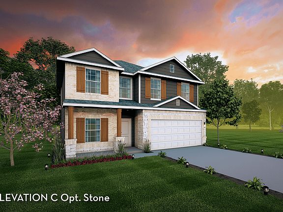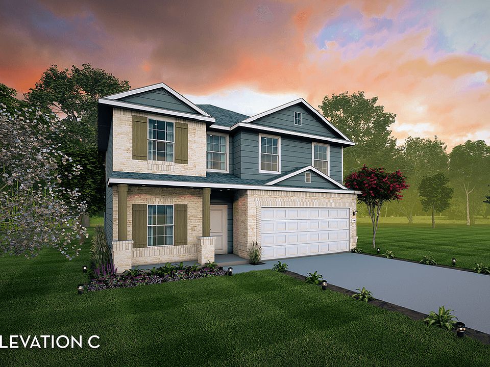 Our grandest home in the Cobalt Series, the Trinity floor plan boasts an impressive two-story floor plan that is sure to suit most any lifestyle.. Upon entry, you are first greeted by the private study room that also has the option of transforming into a fifth bedroom if you would rather have the space for more guests to visit. Next, you will find the access to your convenient downstairs powder room, a walk-in utility room, as well as the entry to your two-car garage. Needing more storage for extra tools or supplies? Opt to swap your standard two-car garage for a sizable two-and-a-half-car garage! Down the hall, you will reach the heart of your home - the massive, two-story family room with soaring ceilings and consisting of plenty of natural light. Opening up to the family room is the convenient adjoined kitchen and breakfast area with access to your optional extended covered patio. Your elegant kitchen comes fully equipped with industry-leading appliances, sleek granite countertops with a ceramic tile backsplash, designer light fixtures, and the option to put in an island and extra cabinets if you desire more counterspace. With features like these, you will want to cook every meal! Completing the first floor is your secluded Master suite with your master bathroom containing the cultured marble countertops with option of dual vanities, a shower/bathtub enclosure, and a huge walk- in closet. Upgrade your bathroom space to include a master luxury bath with stand alone shower o
