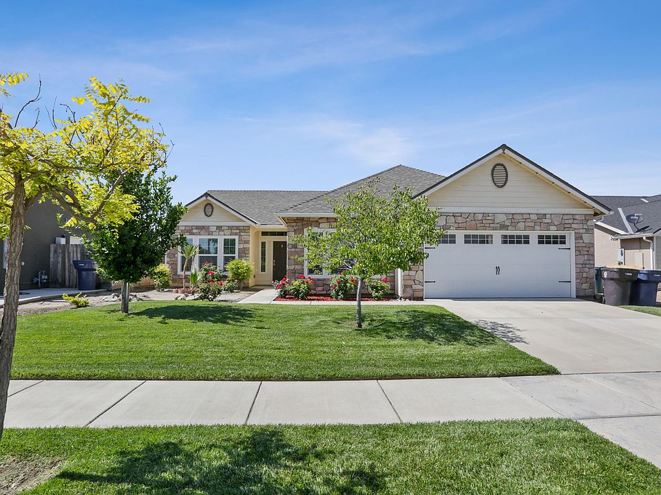 Talk about stunning curb appeal! This charming 4bd/3ba house has over 2200 sq ft with a master bedroom and junior suite! The home continues to impress beyond the front door! Stone facade adorns the front of the home, while large windows, front door with transom and side light, two car garage with hardware detail, and crisp landscaping complete the look. The open concept main living space includes an office, living room, and dining space open to the kitchen. Oversized sliding doors let plenty of natural light stream in to the dining space. The gorgeous kitchen includes all the essentials: plenty of counter and storage space, a timeless color palette, and a pantry and breakfast bar. Down the hallway you'll find four spacious bedrooms and don't forget the Junior Suite! The home is situated on a large lot and features a covered patio, just in time for summer BBQs!