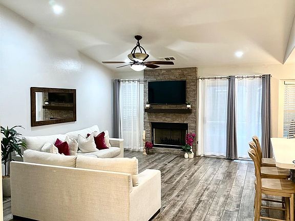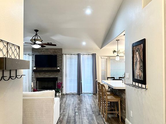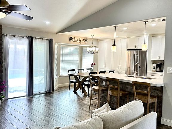 Welcome to your dream home on a spacious corner lot in the desirable Bellagio community in Delano. This beautifully updated 4 bedroom, 2 bathroom residence is packed with modern features and upgrades, perfect for comfortable family living and entertaining. The brand-new kitchen has elegant quartz countertops, custom cabinets, stylish backsplash, SS appliances, and stonework under the barstool seating that complements the fireplace. A built-in closet was added in the formal living for storage space and newly woodlike tile is found throughout the home. Additionally, the master bathroom was fully remodeled and features his and her showers. The exterior is ready for entertainment with a fully covered patio with fans, tile flooring, gutters, shed with outdoor restroom, and a gorgeous swimming pool for those hot summer days. The block walls on all sides surrounding the house add to the enhanced privacy and security. Don't miss out on the chance to call this property your home!