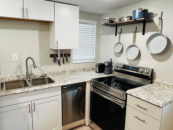 A rare find! This newly renovated and fully furnished cottage is located on the desired West Side of Colorado Springs on a quiet street just two blocks from the heart of Old Colorado City. Within walking distance you'll find parks, coffee shops, shopping, bars/restaurants and a gym. You can't beat this location for your stay, central to many hotspots in the area including: - 2 miles from Downtown Colorado Springs - 2 miles from Garden of the Gods - 4 miles from Manitou Springs The fully stocked kitchen is perfect for someone looking to cook breakfast/dinner after a long day of work or meal prep for the week. The kitchen table doubles as a desk for those looking to work from home. The 42" SmartTV supports all your streaming services and is mounted to adjust so that you can watch your favorite show while in the kitchen. This cottage has its own modem/router to ensure fast and reliable internet/streaming for our guests. A small private patio to the front of the cottage allows our guests to sip coffee outside or enjoy a cocktail at the end of the day. Flexible leasing options available with a 1 month minimum. - All utilities (water, trash, electric, high speed internet) are included - Designated off street parking spot in Old Colorado City - No smoking - No pets - Please observe quiet hours (10PM - 7AM) - Flexible leasing options available with a 1 month minimum.