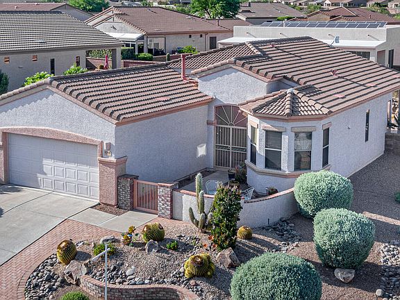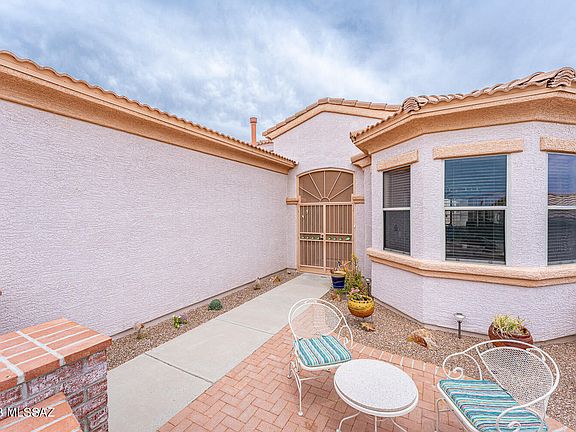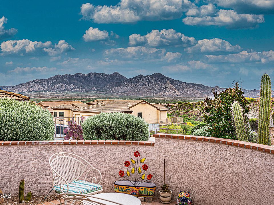The great curb appeal is just the beginning! Enter the front courtyard & soak up the most incredible Santa Rita views! You will be spending a LOT of time out here. After recapturing your breath, head inside to tour a truly lovely home that is perfect for seasonal or year round. Updates include new Daikin HVAC in 2019, beautiful wood look tile in traffic areas, newer H2O heater. Kitchen features rich neutral tile, & a lovely bay window dining area. Gas stove/oven, pantry & pull-out drawers. Large open living room w/ beautiful double doors to backyard. Spacious primary BR w/large walk-in closet, in addition to second closet. Double sink vanity w/ solid surface counters. Private guest room adjacent to 2nd bath. Enjoy relaxing in the delightful backyard w/ water feature. Don't miss this gem!