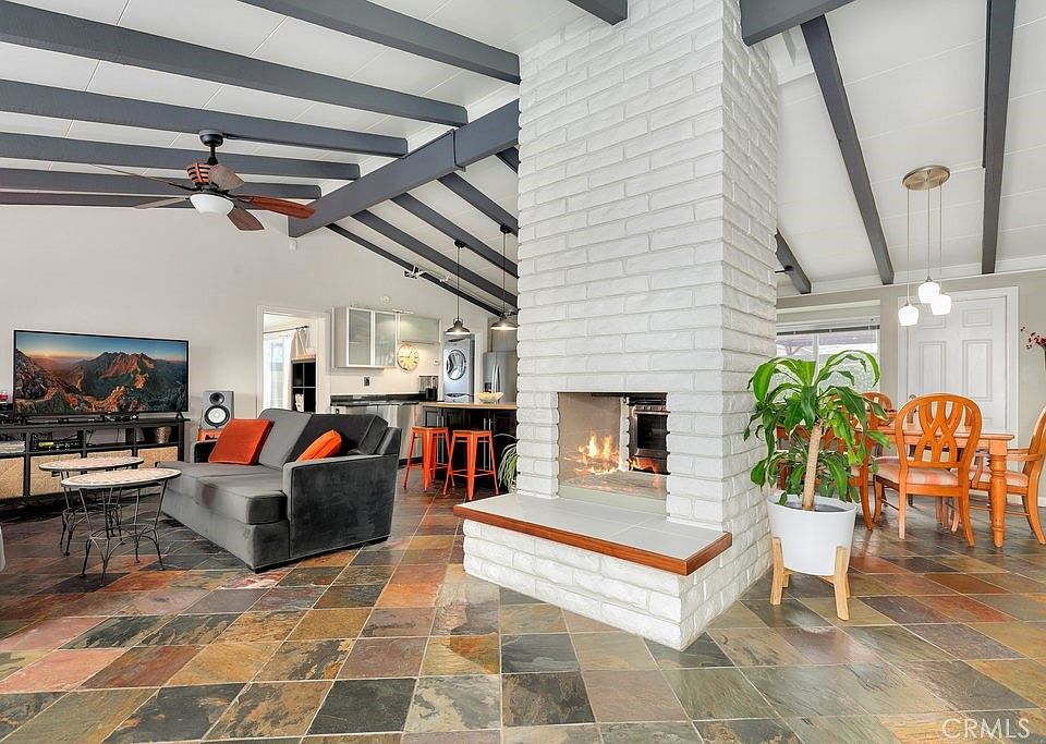 Stunning single-story POOL home in the heart of Orange County! Welcome to 2308 W Huntington Ave, a tastefully remodeled 3 bedroom, 2 bathroom home on a large 7,000 sq. ft. lot. Enjoy the remarkable mix of classic and modern touches throughout, including the timeless slate tile floors, contemporary kitchen and gorgeous beamed ceilings. Gather around the remodeled double-sided fireplace or enjoy views of the sparkling pool from the updated bay windows. Upgraded kitchen is well-appointed with stainless steel Whirlpool appliances and granite countertops. Entertaining is a breeze with access to the backyard from the dining area, or dine alfresco under the twinkling bistro lights next to the pool in the front courtyard. Primary bedroom boasts travertine tile floors, en suite bathroom with dual sinks and a walk-in shower. Both secondary bedrooms have sliding door access to the pool, and the bonus room/4th bedroom is on the opposite side of the house which makes it an ideal guest bedroom. Many upgrades include fully paid off solar panels, new Trane 3-ton HVAC & all new ducting, UV tinted windows and sliding doors, tankless water heater, all new paint, replastered pool with new equipment, and so much more. You won't find another home like this - do not miss this incredible opportunity!
