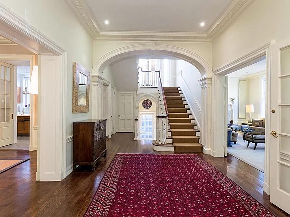 Located on a sought-after block in Kalorama, this 1917 Neo-Classical detached residence features an abundance of architectural details and exquisite moldings combined with modern upgrades. An oversized transom above the front door and a floor-to-ceiling side window fills the foyer with natural light. Glass French doors open to the reception hall that has a gas fireplace, ten and a half foot ceilings, and a grand archway inspired by the entrance at George Mason's Gunston Hall. The home's original architect, James A. Cooper, looked to colonial antecedents for inspiration; the residence is filled with layered moldings, tray ceilings, columns and classical entablature. It was recently renovated by prominent New York architect James Mohn. The formal living room is sited at the front of the house with a gas fireplace, and the dining room is well proportioned for grand entertaining with a wide gas fireplace, arched doorway, and three windows. The kitchen connects to the dining room through two sets of folding doors, allowing complete privacy. It features heated slate floors, two sinks, a Viking six burner range, Viking wine cooler, double Sub-Zero refrigerator with four freezer drawers, Viking double oven, and an island with a breakfast bar. There is a breakfast area off of the kitchen that is open to the family room, which is filled with light from three walls of south facing windows overlooking the garden. The private, brick-walled garden has a heated lap pool with flagstone surround, ornamental fountain, and a side garden. The property is fully fenced and gated. The grand staircase leads up to the second level by way of a landing with a large Palladian window and modern white hanging chandelier. The master suite is south facing, complete with a balcony, sitting room with built-ins, and a walk-in closet with a coffee bar and refrigerator. The master bath features heated tile floors, dual Deca vanities, a contemporary free-standing soaking tub, and a separate room for the commode and frameless glass shower with rain shower head and body jets. The second level library has a wide gas fireplace and opens to a study that has another fireplace. There is a hall closet and bath with a soaking tub and heated floors. The third level has high ceilings, four bedrooms, a bath with heated floors and a spacious tub/shower combination, a bath with a frameless glass shower, and a large upper level laundry room with a cedar closet, sink, and storage built-ins. There is a walk-up attic with ample room for storage that could be finished into more living space. The lower level has a family room, second laundry room, storage, wine cellar, and an in-law suite with a bath and kitchen. The home has an alarm system, is wired for sound, has all new electrical and lighting, and has three-car gated tandem parking.