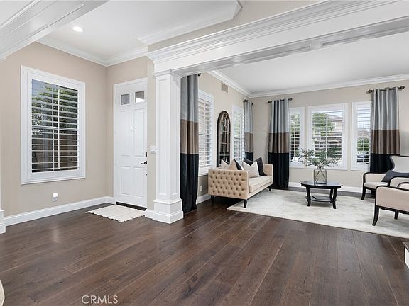Timeless elegance and quite luxury awaits you at this stunning residence in the guard gated community of Stoneridge in Mission Viejo. Boasting approximately 2,800 square feet, the home showcases a seamless open-concept layout from the front parlor and dining room to the kitchen and living space. This home's sophisticated design features dark hardwood flooring, custom woodwork embellished throughout, recessed lighting, elevated ceilings and an abundance of natural light. The chefs kitchen includes a 6 burner gas cooktop, dual ovens, granite countertops and a large island with seating perfect for gathering. The first floor is complete with a main floor bedroom and full bathroom. Ascend to the second level to find 4 additional bedrooms, 2 full bathrooms and laundry room. The primary suite impresses with dual walk-in closets and an oversized en-suite bathroom that has been thoughtfully designed to include ample storage, a large soaking tub and frameless glass shower. Relax and entertain in your private backyard which reveals a large pool and jacuzzi, paved decking and ample seating area. Additional highlights include a three-car tandem garage complete with built-in cabinetry and epoxy flooring. Residents of Stoneridge will have access to scenic hiking and biking trails and a private park overlooking the canyon and Saddleback mountain. Enjoy exclusive access to Mission Viejo Lake, popular for hiking, picnicking, fishing and boating. Close to golfing, shopping, restaurants and award-winning schools, this spectacular residence will be hard to beat.