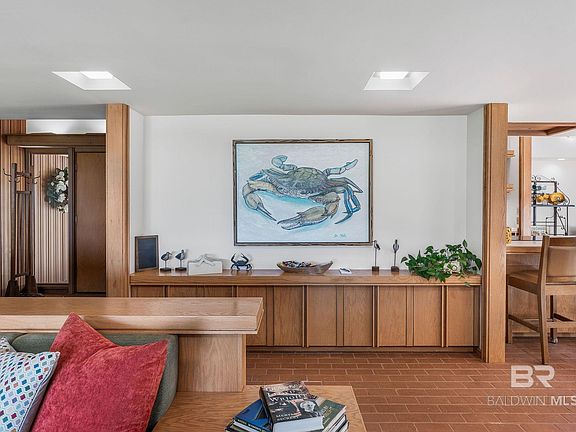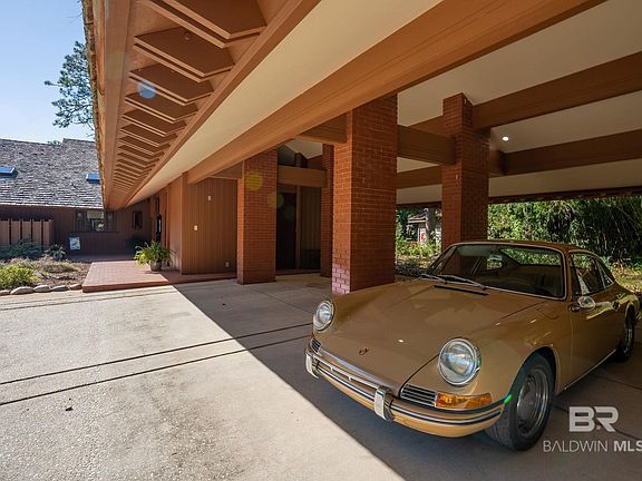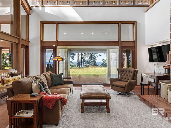 Welcome to this exquisite E. Fay Jones designed Mobile Bay front home located at 23089 Main St in the Montrose area of Fairhope, AL. Nestled within a lush natural environment on 2.8 acres, this architectural gem seamlessly blends with its surroundings, offering a harmonious living experience. Jones was an apprentice of Frank Lloyd Wright and was awarded the prestigious AIA Gold Medal in 1990 and has a namesake school of architecture at the University of Arkansas. Upon arrival, you'll be captivated by the home's stunning exterior, characterized by a combination of natural materials, clean lines, and a focus on integrating with the landscape. The design showcases Jones' signature touch, celebrating the beauty of nature and creating a tranquil retreat. Stepping inside, you'll be greeted by an interior that effortlessly combines warmth, elegance, and functional living spaces. The open floor plan allows for a seamless flow between the rooms, promoting a sense of connectivity and comfort. Large windows and skylights invite an abundance of natural light, creating a bright and airy atmosphere. The living areas exude a sense of serenity, with carefully selected materials and finishes that complement the overall aesthetic. The use of wood, stone, and other natural elements further enhances the connection to the outdoor environment, blurring the boundaries between inside and outside. Outside, the property boasts meticulously landscaped grounds providing a private oasis for relaxation and contemplation with the most stunning sunset views, as well as a well appointed staircase down to your private beach. The outdoor spaces are designed to harmonize with the architectural vision of E. Fay Jones. This home is a masterpiece of architectural excellence that seamlessly integrates with its natural surroundings. With its meticulous craftsmanship, attention to detail, and a deep respect for nature, this home offers a unique opportunity to experience living in a serene environment.