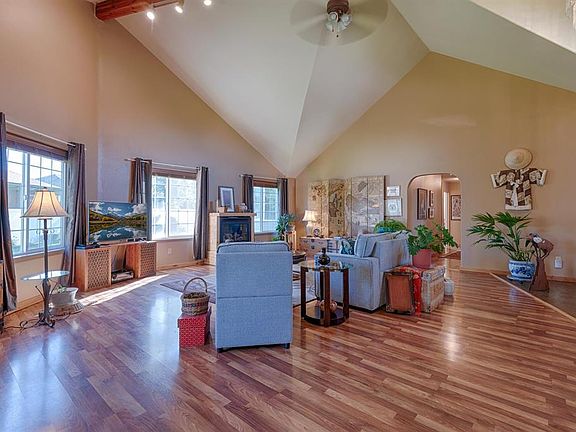 Step into the ambiance of this custom home's elegant Great Room with natural light streaming through panoramic windows. Delight in the warmth of the romantic wood-framed gas fireplace, perfect for embracing the crisp evenings. The spacious tiled dining room offers picturesque views of the expansive backyard lawn adorned with mature trees and flower beds. Enjoy Colorado outdoor living on the raised brick patio and extended tiled area, complemented by the convenience of a programmable sprinkler and drip system. Beyond the four spacious bedrooms lies a versatile custom-designed flex room upstairs, ideal for a home office, family retreat, game room, or theater. Embrace modern connectivity with a new (2022) high-tech fiber optic network system spanning the entire house, seamlessly integrating the private upstairs flex room and bedroom wing. Smart House features enhance security and comfort, featuring state-of-the-art security cameras, a surveillance-equipped panel, and HVAC controlled via a mobile app. This meticulously maintained property boasts recent upgrades including a newer roof (2016), furnace (2017), and tankless water heater (2017), ensuring optimal functionality and efficiency. Nestled within the prestigious American Village community in Montrose, this home offers a serene retreat amidst majestic mountain vistas. Enjoy proximity to a wealth of amenities including restaurants, grocery stores, entertainment venues, the Montrose Rec Center, and more. Discover your sanctuary of beauty and tranquility – schedule a viewing today to experience Colorado living at its finest.