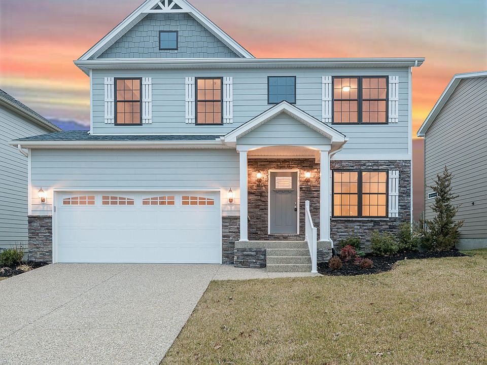 This tuscany style home features hardie board exterior siding with stone and shaker accents. It has 4 bedrooms, 2.5 bathrooms, 2 car attached garage and a walkout basement with rough-in for a future full bathroom. 9' ceilings and hardwood floors on the first floor. The kitchen comes with stainless steel appliances, granite counters, and a nice size pantry. Built-in bench/cubbie unit in the laundry room as you walk in from the garage. Hip vault ceiling in the master bedroom. The master and spare bathroom have 60'' double bowl vanities. Catalpa Farms is a newer community connected to the Shakes Run Community on Eastwood Fisherville Road and will eventually have its own entrance off of Clark Station at Taylorsville Road. Catalpa Farms will share the Shakes Run pool and clubhouse until the Catalpa Farms amenities are put in place. Located on a small cul-de-sac street.