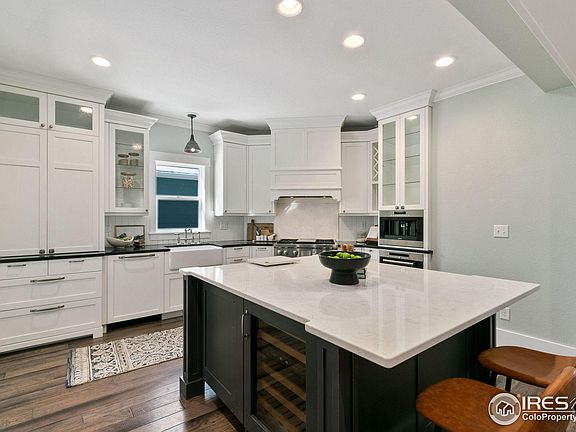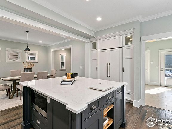 The gourmet kitchen is a chef's dream, featuring top-of-the-line luxury appliances including Wolf 36" Dual Convection Oven and 4 Burner Gas Range with Griddle, Zephyr Vortex one-piece Range Vent Hood, Wolf 24" Convection Steam Oven, Wolf 24" Whole Bean Expresso Machine. A designer's touch with integrated white panels hosting the Sub-Zero 36" French Door Refrigerator and Freezer, and Bosch Silence Plus Dishwasher. Island embraces an undercounter Wolf 24" Microwave, Sub-Zero 24" Dual Zone Wine Storage with Glass Door, two fresh produce baskets, and Rohl white apron kitchen sink and faucet. Cambria Quartz counters top off this exquisite kitchen in complementary colors and finished with soft-close custom white cabinetry. This luxury Craftsman bungalow, where classic design meets modern elegance. From the moment you step onto the covered front porch, you will be transported to a world of warmth and comfort. This beautifully appointed home boasts exquisite details, including Anderson Bernina Hickory rich hardwood floors, Restoration Hardware lighting, exceptional attention to detail and high-quality craftsmanship, down to the crown molding and window trim. The living room features a gas fireplace framed by an Earthwood's custom white mantel, cabinetry, and wall paneling. This home is perfect for gathering with friends and family, hosting elegant dinners or special occasions. The luxurious primary suite is a private retreat, with an ensuite bathroom with soaking tub, separate shower, and dual sinks including Milarc custom cabinets, framed mirrors, granite countertops, barn door and oversized walk-in closet. The finished basement provides even more living space, to enjoy. Step outside and enjoy this Urban backyard offering raised garden beds with drip lines. Located in a desirable neighborhood, just minutes from Old Town Fort Collins, shops, restaurants, and entertainment. Explore City Park and Horsetooth Reservoir and check out the trails nearby.