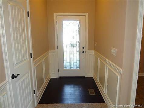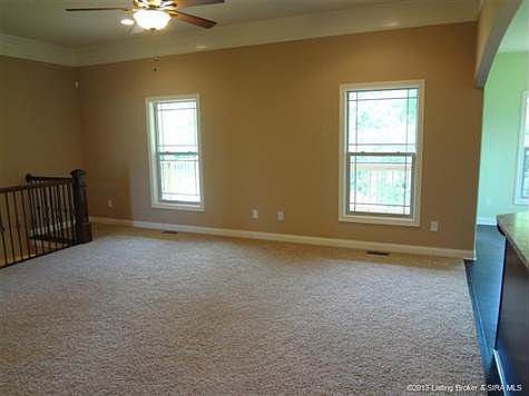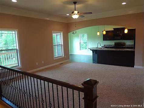 CUSTOM BUILT HOME BY INFINITYintroducing THE MUIRFIELD II one of Infinity's most desirable and spacious floor plans. This plan offers MORE THAN 2,300 square feet on a FULL, FINISHED WALKOUT including 4 BEDROOMS and 3 FULL BATHS. Perfect the growing family! Enjoy entertaining in the kitchen with UPGRADED cabinets, not to mention it opens up into the beautiful living area with 10-ft ceilings, archways, rounded corners, engineered wood flooring, cathedral/vaulted ceilings, upgraded tiered trim package, and energy efficiency. The exterior is ALL BRICK WITH STONE ACCENTS, giving this home its own unique style. Closing to take place at Kemp Title. All room measurements and square footage are approximate. Amenities and features subject to change. Listing agent is not verifying the accuracy of the school district; buyers are encouraged to contact local school board for verification. One owner is a licensed real estate agent.\n\nInformation Deemed Reliable But Not Guaranteed. Information provided by the Southern Indiana REALTORS® Association, Inc. © 2010 SIRA Multiple Listing Service. All rights reserved. Brokered And Advertised By: Keller Williams Realty Consultants Listing Agent: Michelle Warford