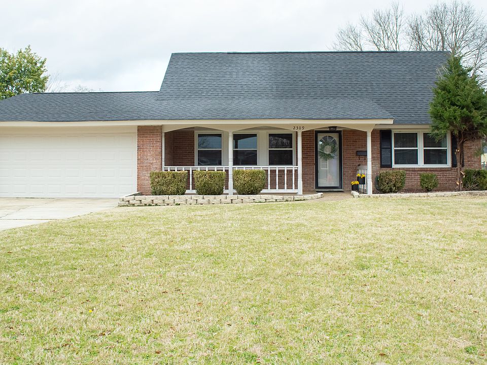 TURNKEY READY to move in, 2-story, BRICK home with DOUBLE garage centrally located in Winchester Subdivision. 4 bedrooms & 2 full baths with tile showers. Extra bonus room off upstairs bedroom perfect for nursery or sitting room. Fandelier ceiling fans insure climate control. Large front living room, huge family room with large brick, gas log FIREPLACE, lots of windows and double doors opening to 14'X14' patio area for entertaining. Large, open remodeled kitchen with subway tile, new appliances, granite countertops, lots of cabinet space and separate pantry. Oversized office/ laundry room. BRAND NEW ROOF and CARPETING, fresh paint throughout, updated windows, modern light fixtures, and ceiling fans, exceptionally clean. Nice, quiet neighborhood, large, chain-link fenced back yard on level lot with 25'X25' basketball area. Banner brand storage building and lots of inside storage space. 2-car GARAGE has pull-down attic space.