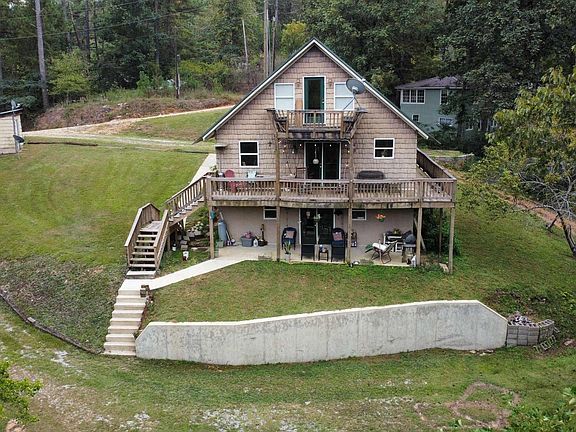 Waterfront property offering peace and quiet!! This home is one of a kind with its beautiful views and amazing construction. 5 bed 3 1/2 bath layout with a fully finished walkout basement and a fully finished upstairs with a balcony up top. Wrap around porch so you can drink coffee as you watch the sun rise from the East. This home was custom built with extra thick walls and double insulation offering a super low power bill all year! Why worry about climbing stairs when a private road is available to drive all the way to the wonderful enclosed boat house with deep water access allowing storage for 2 boats which will be high and dry on the 2 boat lifts! Water comes from the 180ft deep well to feed the house and boat house so no water bill! The property will come fully furnished ready to go! You have to see this home to appreciate it!