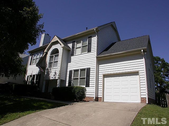 Lovely home in excellent North Raleigh location! Bright and open feel throughout. The spacious living room features a gas log fireplace and opens into a sunroom with beautiful natural light. Updated kitchen with white cabinets, granite countertops, and center island. Large master bedroom upstairs with dual vanities, separate shower, and walk-in closet. Plenty of storage in the large, unfinished attic. Rear deck and stone patio overlook a fenced-in backyard. Only minutes to Durant Nature Preserve!