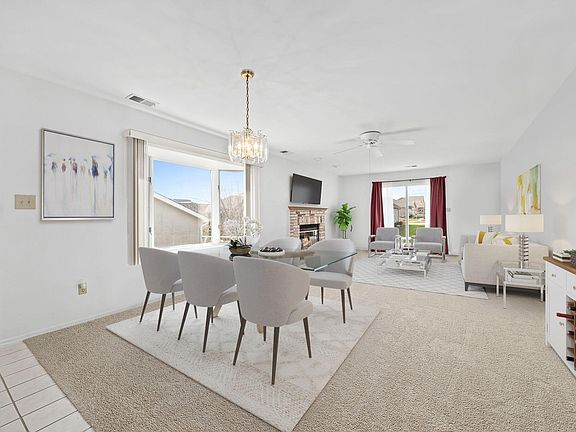 Your LOW-maintenance lifestyle starts here with this spacious one-level end unit offering an open floor plan, great natural light, and easy main-level living throughout. The large living/dining area features a cozy fireplace, bay window, and sliding doors to the rear patio, while the oversized eat-in kitchen offers ample cabinetry, all appliances included, and space for a breakfast table. Main-floor laundry with washer and dryer provides direct access to the attached 2-car garage. The primary bedroom includes dual closets, a large window, and a private bath, and the second bedroom/den opens to a charming private courtyard. Additional features include a quality ramp for accessibility and super low HOA.. Conveniently located just off Route 30 near restaurants, shopping, and everyday conveniences--schedule your showing today.