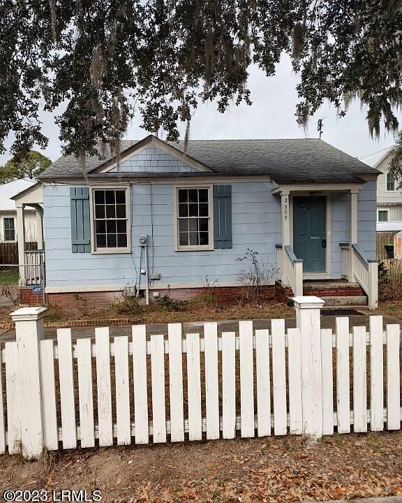 LOCATION, LOCATION & LOCATION! Less than one block from Bay Street and Ribaut Road intersection/stoplight. A very short and scenic walk along Bay Street River Bluff to Downtown Beaufort restaurants/stores & the festivals/events at the Chambers Waterfront Park. Enjoy viewing the parade of boats & yachts on the Atlantic Intracoastal Waterway of the Beaufort River. Affordable 2 bedroom, one bath efficient home with hardwood oak flooring throughout home. Kitchen with room for the dining area included. Kitchen has a side door that buyer can build carport/deck onto, then enjoy grilling steaks while enjoying friends & fresh air. Central gas heat & electric air. Includes a refrigerator, electric oven range. NEW RINI TANKILESS WATER HEATER. Off the ground crawl space. Landscaped yard with fencing.
