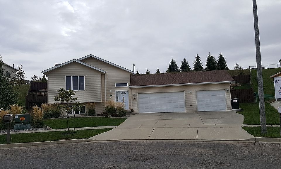 Welcome to this beautiful, split entry home in a quiet cul-de-sac, only a block from an elementary school! A MUST SEE in SE Mandan. A pantry, breakfast bar, and tiled backsplash are perks to this kitchen. The main floor master suite offers a walk-in closet, private bath with multiple shower heads, and private door leading to a maintenance free deck. In the lower level you will find a daylight family room with a fireplace just in time for winter. The garage has been completed to have a third stall or separate workshop area. This private, fenced backyard is ready for entertaining with two decks and a patio with hot tub hookups. The yard is complete with garden shed, decorative retaining wall, sprinklers, and landscaping.