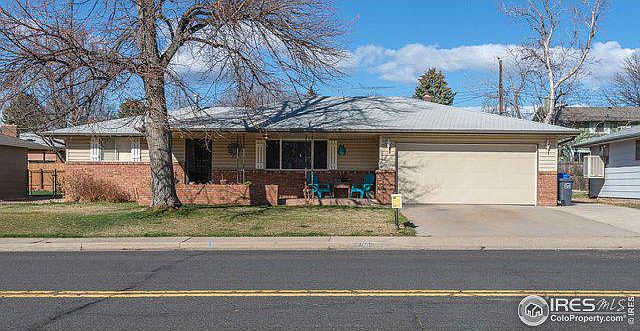 Open ranch home with 3 bedrooms & 1.5 baths, two-car garage, hardwood floors, & central A/C. Updated stainless appliances. Open Kitchen with eat-in area. Covered front porch and space for RV parking. Radon mitigation system, plus added insulation for utility savings and efficiency. Fenced backyard, sprinkler system, storage shed and back patio. No HOA. Nicely located a few blocks due west of Lake Loveland. Close to shopping and schools. Well kept home. Clothes washer & dryer included.