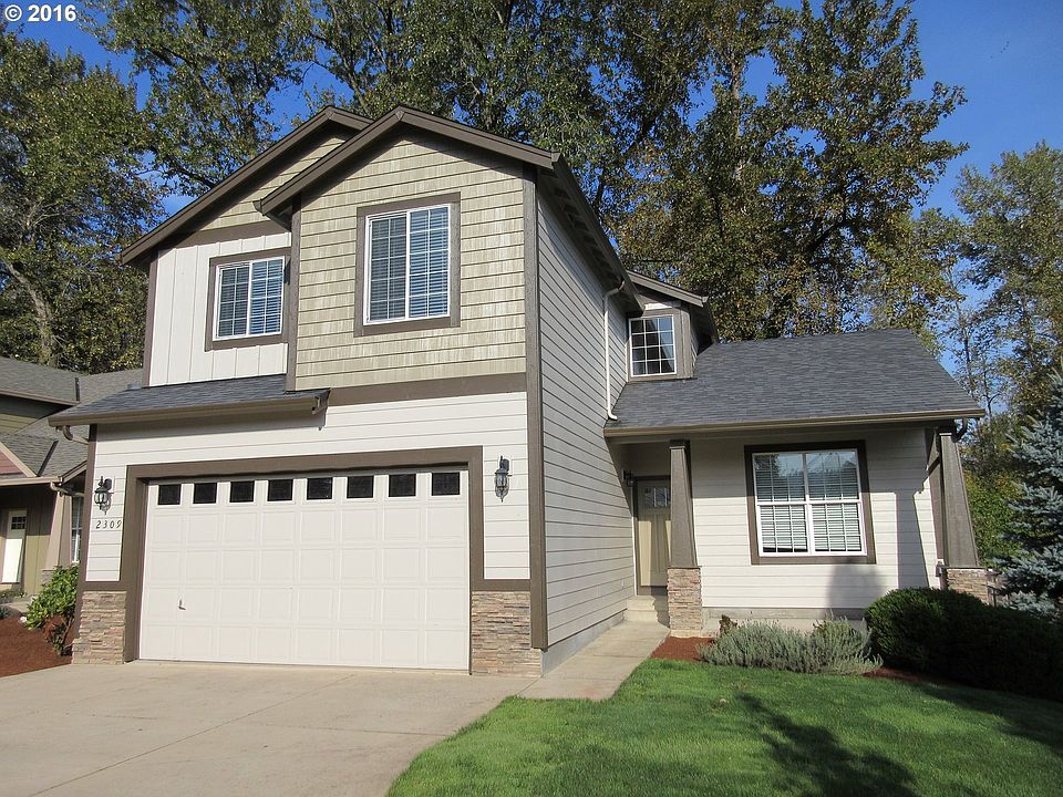 4 Bed, 2.5 bath, 1986 SF home in great South Salem location! New exterior paint. Vaulted FR with Gas FP, wood laminate flooring. New carpet. Custom cabinets in kitchen with stainless steel appliances & tile granite counter tops. Master bath with 2 sinks, tile counter tops. FA Gas, pre-plumbed for AC. Fully landscaped & fenced with IG sprinklers.