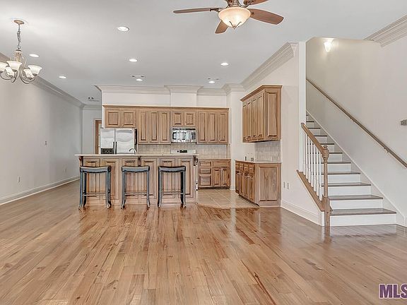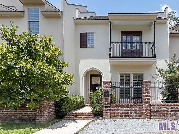 Great location for this wonderful architecturally designed townhouse featuring 3br, 3ba + office + 2nd floor kitchenette. Walk the LSU Lakes, restaurants and more! The front brick courtyard welcomes you into the open concept floor plan featuring 10 ft. ceilings & ventless fireplace, & wood floors in foyer, living, dining, hallways & stairs. The kitchen features cypress cabinets, granite countertops, stainless appliances, & walk-in pantry. The first floor also features a guest suite with a spacious hall bath. There is also a private courtyard leading to the two car garage. The 2nd floor features 10 ft. ceilings, an office, a kitchenette, large laundry room, large guest suite with walk-in closet, hall bath & master the suite. The master bedroom has a balcony overlooking the front courtyard, & large bath with double vainty, jetted tub, separate shower & large walk-in closet. The rear exterior wall features double studded construction with soundboard & fire rated drywall. Washer, dryer & refrigerator remain. New paint throughout interior, newly painted stucco out front, & new carpet upstairs.