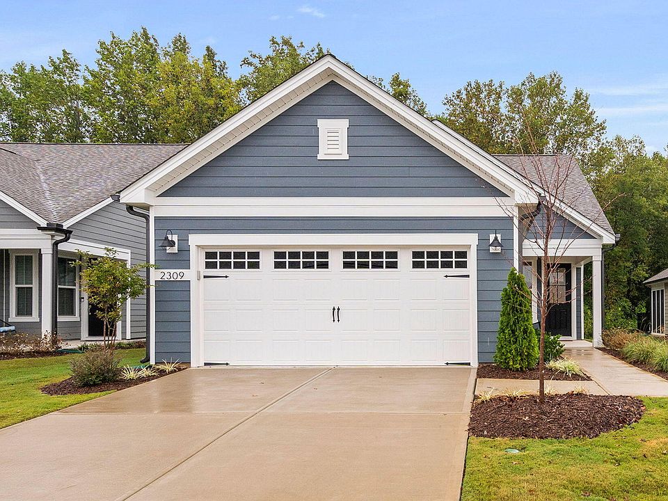 Del Webb Compass model with a rare second floor, beautifully sited on a premium wooded lot in Carolina Gardens. Move-in ready and protected by a transferable Del Webb 2-5-10 warranty, this thoughtfully upgraded home offers 3 bedrooms, 3 baths plus an office and 1,953 sq. ft. of efficient, livable space. Step inside to elevated finishes and modern convenience: smart-home features include Wi-Fi thermostats, video doorbell, garage door opener and TV wiring — the gathering room is pre-wired for a flat panel and ideal for movie nights or entertaining. The primary suite is a true retreat with a tray ceiling, ceiling fan, surface-mounted LED lighting and an extra sitting area perfect for an office or reading nook. The primary bath is upgraded with a shower seat, safety grab bar and a custom walk-in closet with built-ins. The chef's kitchen shines with 42'' soft-close cabinets, quartz countertops, designer tile backsplash, Blanco Precis granite sink with soap dispenser, pendant lighting, custom pantry shelving and KitchenAid stainless appliances; a one-year-old counter-depth LG refrigerator conveys. Upgrades continue throughout with premium paint, upgraded fixtures and flooring, ceiling fans in all bedrooms and the loft. An extended 2-car garage (+4 ft.) is finished and insulated with upgraded lighting, insulated door with glass inserts and a 20-amp dedicated GFI circuit for appliances — perfect for extra storage or a workshop. Comfort and efficiency features include radiant-barrier roof sheathing and blown insulation upgraded to R-49 for year-round energy savings. Outdoor living is easy with a screened-in patio plus an extended uncovered patio backing to mature trees for privacy. Additional highlights: Sentricon termite protection system, SimpliSafe security system, Thermatru Fiber-Classic front door with privacy glass, exterior GFI outlets, and a 1-year-old LG washer and gas dryer that convey. Carolina Gardens amenities support an active, resort-style 55+ lifestyle: a stunning 20,500 sq. ft. clubhouse with multi-purpose rooms, community kitchen/café and ample gathering spaces; a fitness center with aerobics studio; indoor and outdoor pools plus a hot tub; four pickleball courts and a tennis court; community gardens, lush parks and a dog park; and an on-site lifestyle director who organizes events, classes and activities. Age rule: at least one resident must be 55 or older; children aged 19+ may be permanent residents provided the community's 55+ requirement is met.