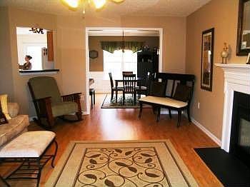 Wow, beautiful home at best value in Cornerstone on .31 acre cul de sac lot! Rocking chair covered front porch. Private backyard with view of natural wooded area w/seasonal stream & Patio. Shining laminate wood flrs installed in Den & Dining rm 3 yrs. ago. Den features gas log fireplace. Laundry rm off Kitchen. Mstr. Ste. features vaulted ceiling, walk-in closet, garden tub & separate shower.
