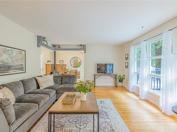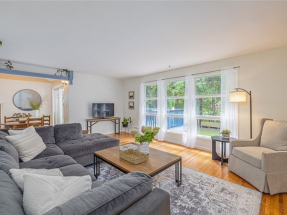 This centrally located ranch on Highland Ave just feels like home & offers the perfect blend of charm & modern updates. The open floor plan features a spacious living room w/ a picture window that floods the space with natural light & offers serene views of the private, tree-lined lot. The updated kitchen boasts LVT flooring & white cabinetry, seamlessly flowing into the cozy dining area. Newly refinished hardwood floors run throughout most of the main level that's been freshly painted in light neutral tones. Enjoy outdoor entertaining on the large deck, easily accessible from the main living area. The walkout finished basement includes a family room or lounge, full bath, & 3rd bedroom perfect for guests. The circular driveway w/ entrance from Village Lane adds convenience to this delightful home and the nature path right across the street is perfect for free time enjoyment! New Furnace 2024! Don't miss this amazing opportunity! Showings start Friday 9/20 at 8 am and offers due Tuesday 9/24 at 2 pm.