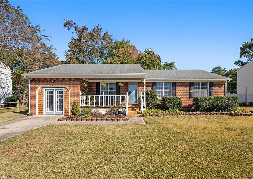 Welcome to this beautifully updated brick ranch with great curb appeal, located in the sought-after Grassfield school district! Inside, you’ll find a well-designed layout featuring two spacious living areas, a large dining room, and an open kitchen with Corian countertops, a glass backsplash, and a farmhouse sink. New LVP flooring, fresh paint and updated lighting add a modern touch. With three bedrooms and two full bathrooms, this home is truly move-in ready. The attached garage is semi-converted into a workshop with French doors and A/C. A detached two-story barn workshop (16x23) and additional shed offer ample storage. Enjoy outdoor living on the covered front porch and in the private backyard with garden beds. Don’t miss this gem!