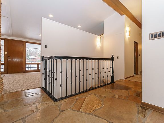 Walk past the enclosed court-yard with weeping Japanese maple, through the front door, across the stone entry way and have your breath taken away with the floor to ceiling window-view of the open, park like, backyard. This mid-century modern home features a giant Great Room with beautiful brick wood-burning fireplace, recessed lighting and new carpet. In fact, there is new carpeting and paint throughout the entire main floor. Right off the Great Room step out onto the long covered deck that runs the length of the room and then some. Stairs lead to a small patio overlook stone planters with filled with Hostas. All this in NE Cedar Rapids with easy access to I-380.The Kitchen sits next to the great room and includes new concrete counter tops, faucet, deep under-mount sink all installed in last couple years. It also features a skylight overhead, under-cabinet lighting, dishwasher, fridge and ceramic top range. All rooms on the main floor, other than baths, have tall vaulted ceilings. The main floor includes the Master Bedroom with it's own bathroom, two other bedrooms and a bathroom. Take the open carpeted stairs downstairs and discover a large carpeted Family Room with its own wood-burning fireplace and open view of the backyard. Just outside is a lower patio area too.Recent improvements include new master shower, hall bath/shower, and front walk. Six-feet overhangs shade in the summer and protect during the winter. In late 2010 the entire roof was removed, most of the sheeting replaced, additional insulation blown-in over the bathrooms, foam insulation board over entire roof and then high quality 50-year Ecoasis Premium Solar Reflective asphalt shingles professionally installed. New skylight over kitchen was also installed at same time. The fireplaces have been professional serviced along with a new crown coat on top of the chimney.Great neighborhood and walking distance to schools. The basement includes a long work bench, large amount of storage shelving and front-loading washer and dryer set.