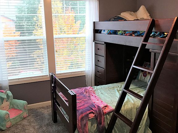 Beautiful well-kept home with many upgrades in wonderful neighborhood with GREAT schools. Large kitchen with solid cherry wood cabinets and pendant lighting over island (same cherry cabinets in bathroom with tile counters). Wrought iron cherry hand rail, vaulted master bedroom with on suite, jetted tub and walk-in closet. Laundry upstairs with cherry cabinets. 9 ft. ceilings downstairs, wall sconces, tread lighting (stairs/hallway), extra lighting throughout and plumbed for a central vacuum system. Home is fully insulated even between levels for sound proofing. New carpet (6/2020) and new laminate flooring throughout lower level (2019). Directly next to park with basketball court, picnic tables, playground structure, and a walking paths throughout (neighborhood has three great parks). A/C unit, hardy plank concrete siding, RV parking, huge storage racking system in garage, extra outlets on eves for Christmas lights. Professionally landscaped private back yard surrounded by Leland cypress trees, fully fenced with covered paver patio (installed August 2020) and storage shed. Paver patio extends via stone steps to hot tub pad, plumbed for electrical along with gravel fire pit seating area. Sprinkler system in front with lovely front sitting porch. Will work with Buyers agents.