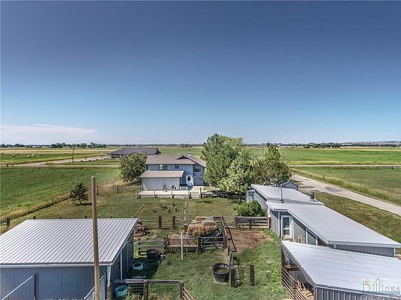 Country living situated on 5 irrigated acres w/ a private well & ditch rights. Property if fully fenced, 4 of the acres are alfalfa. Home is updated with a cheery foyer/sunroom, spacious living room, large kitchen and formal separate dining room. This multi-level home has four bedrooms, one of which is a master bedroom with a half bath. Home has a newer AC and furnace and a leased propane tank. There is also plenty of storage on this property both in the basement and an extra storage shed room attached to home. But lets not forget the shop, corrals, chicken house and hay storage area. Pastural living close to Billings.
