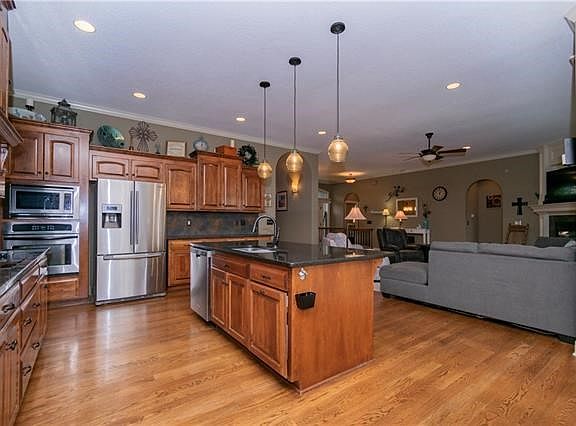 GORGEOUS HOME & WELL LOVED!! Great location and walking distance to elementary & high school. Unique open floorplan, 10 ft ceilings, with tons of living space and character. Top end finishes, hardwood floors, butler's pantry, gourmet kitchen with cherry cabinets, large pantry. Walks out to large covered deck, A TRUE ENTERTAINER'S DREAM! Walk-out finished basement with wet bar, 2 bedrooms, full bath & living space to fit your needs. Cascades out to a large patio with hot tub & level fenced yard. Beautifully landscaped with sprinkler system. Also features 1st floor handicapped accessible 2nd bedroom & shower. YOU WILL WANT TO CALL THIS HOME!!